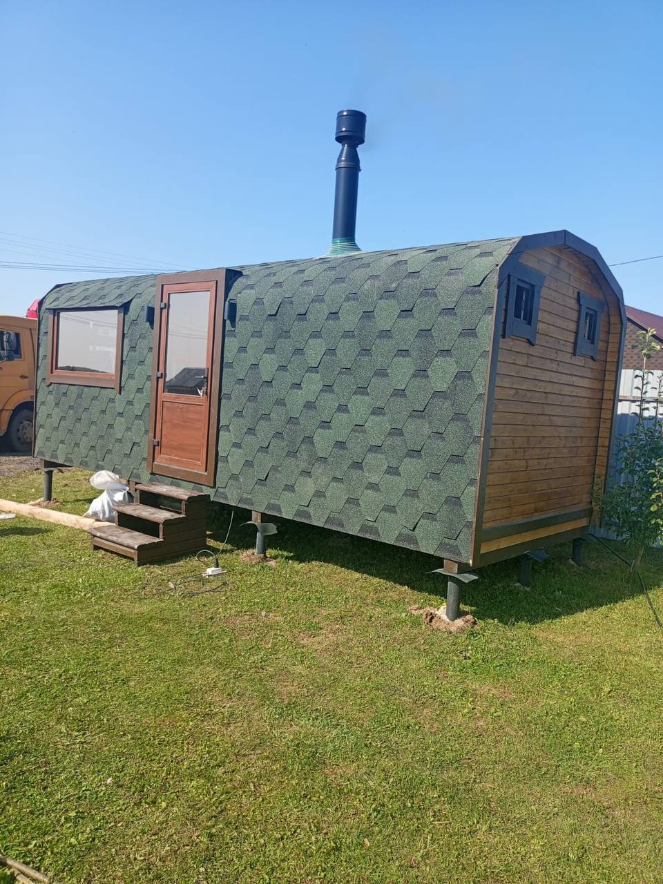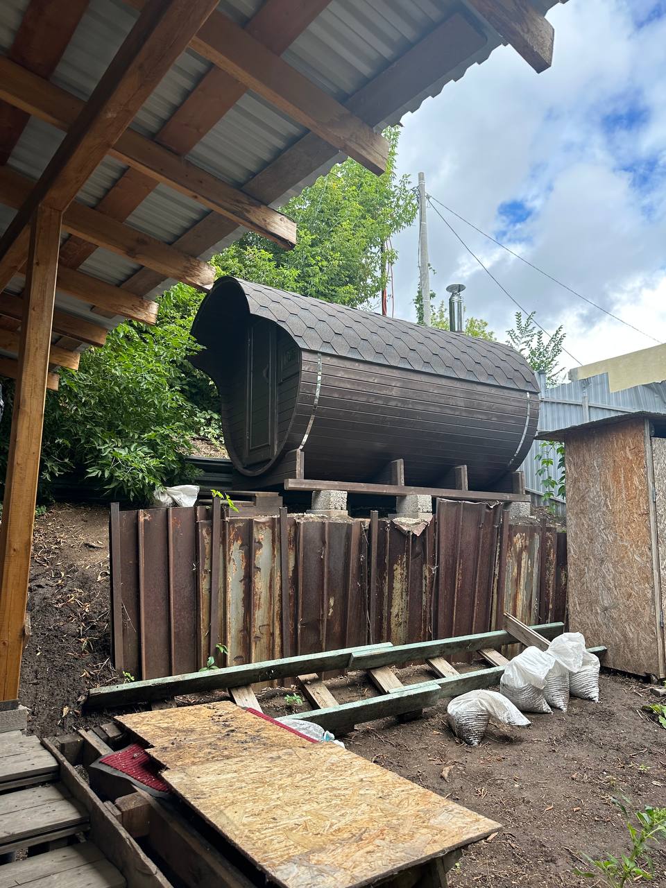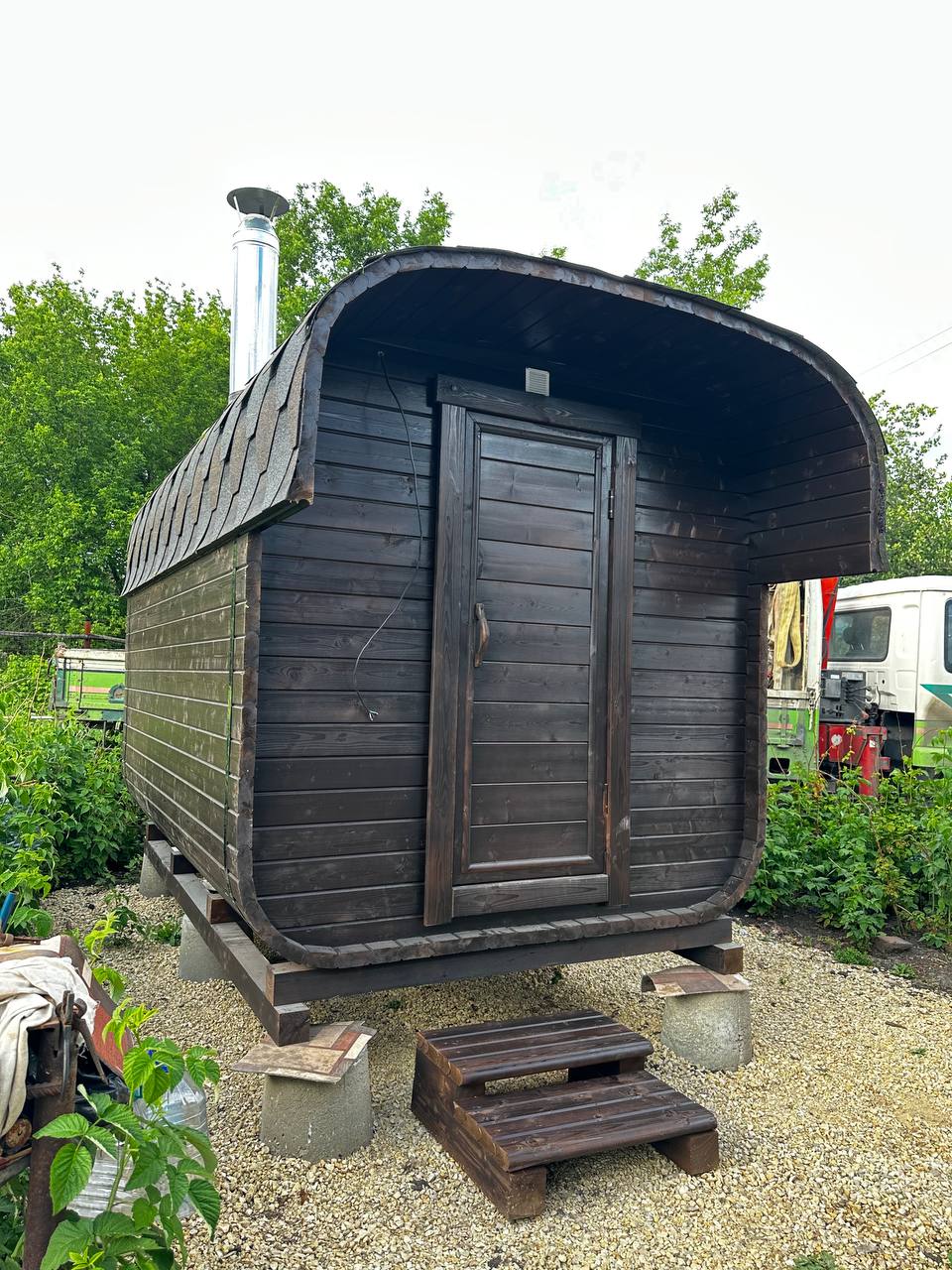Баня-бочка 3.5*2.10 с козырьком