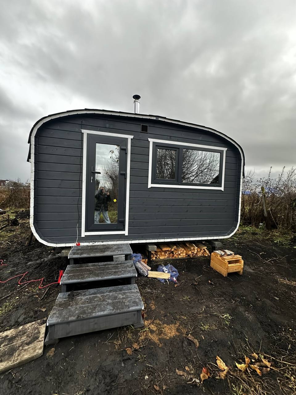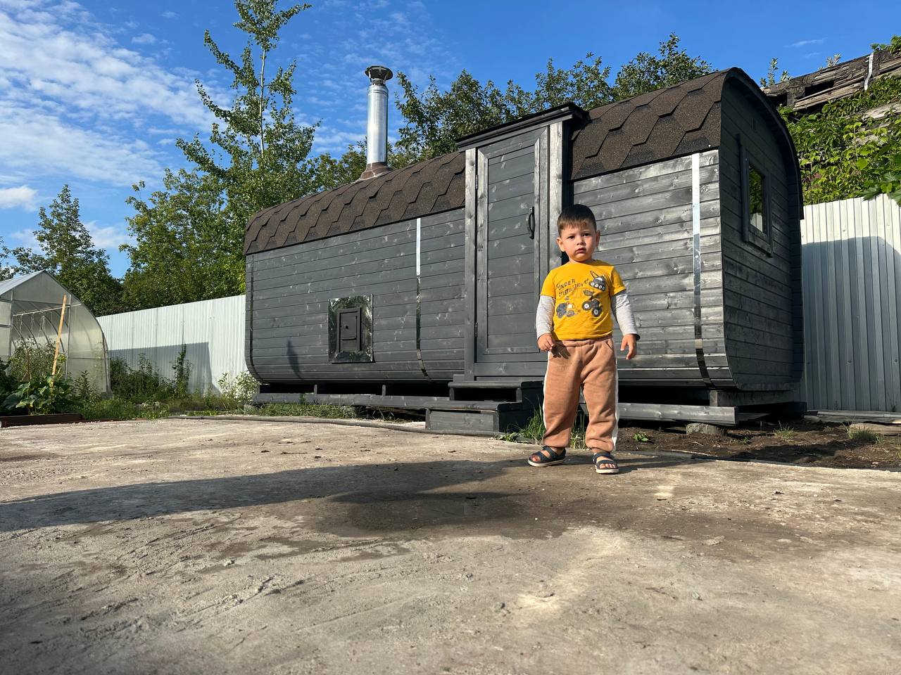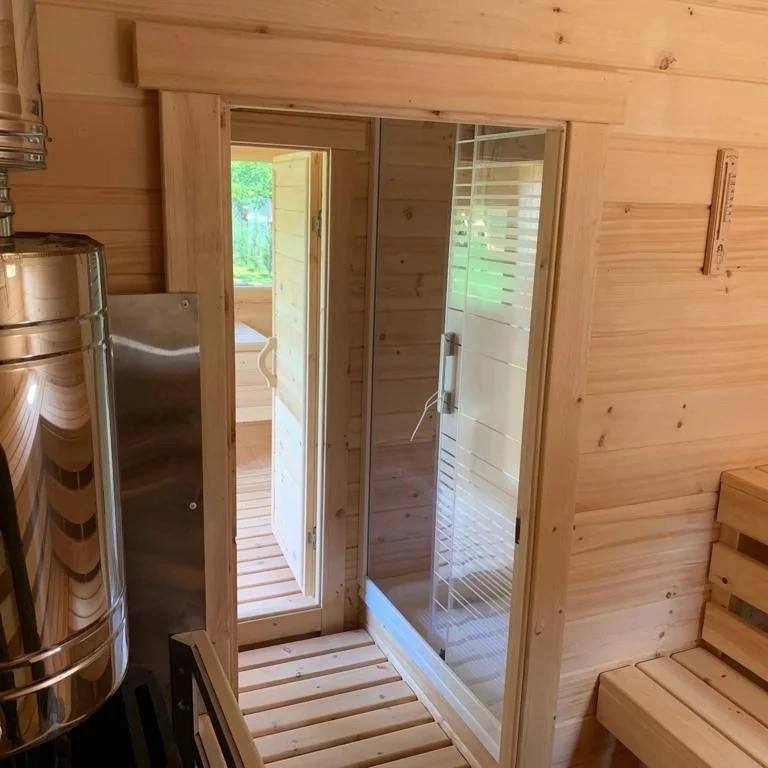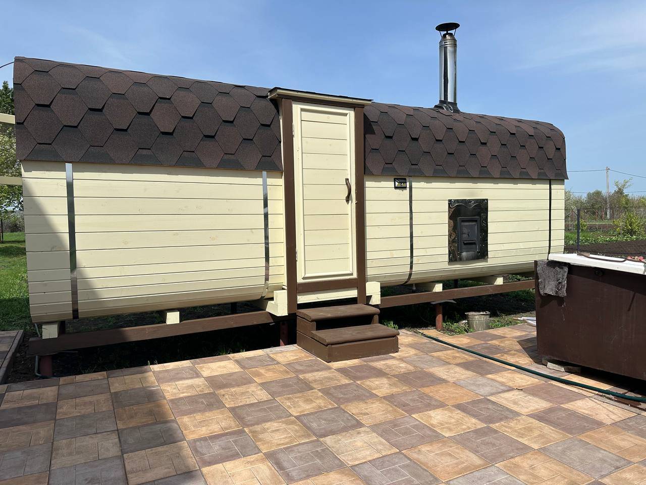 Баня-бочка 3.5*2.10 с козырьком