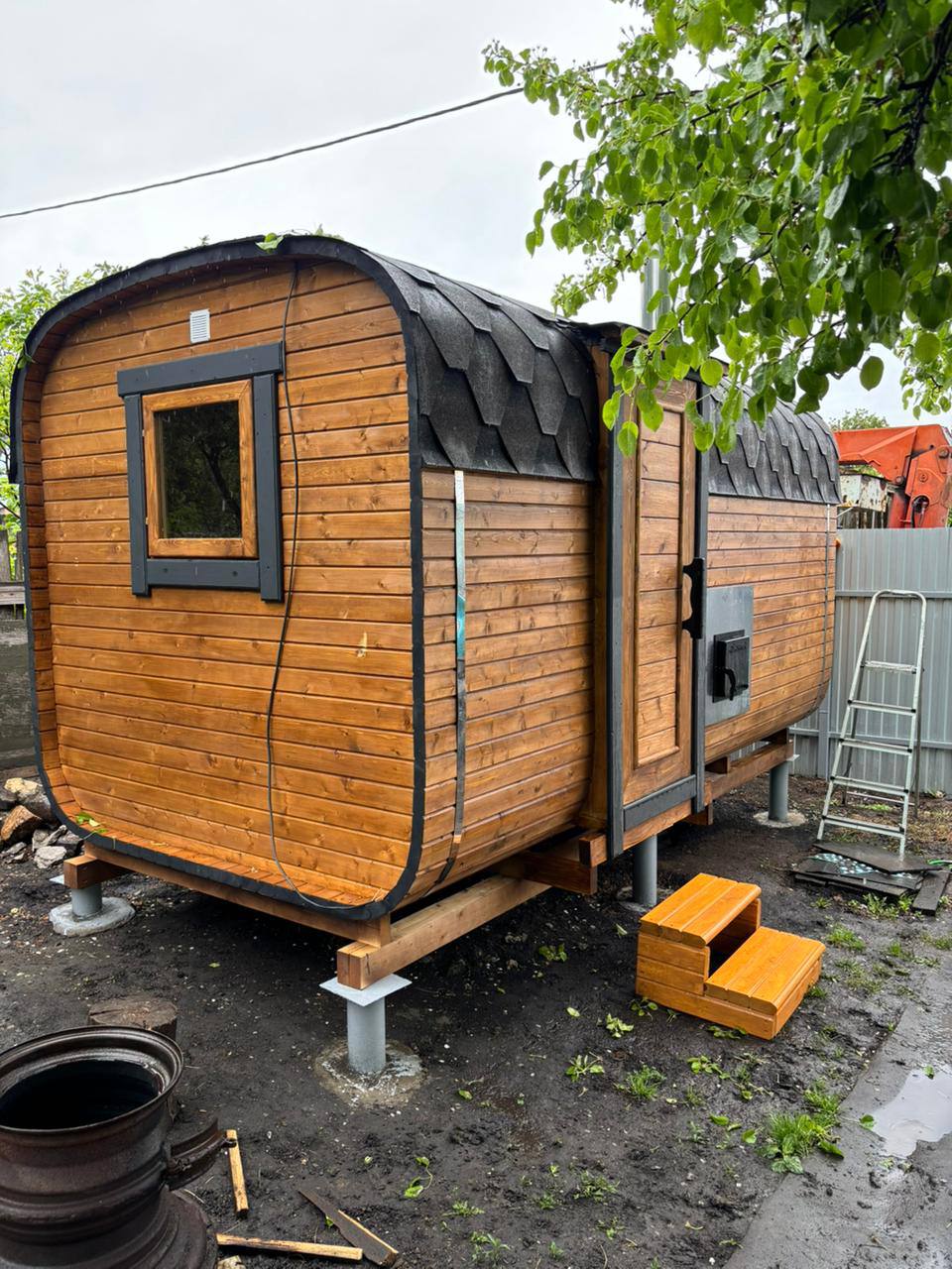 Баня-бочка 3*2.10 с козырьком