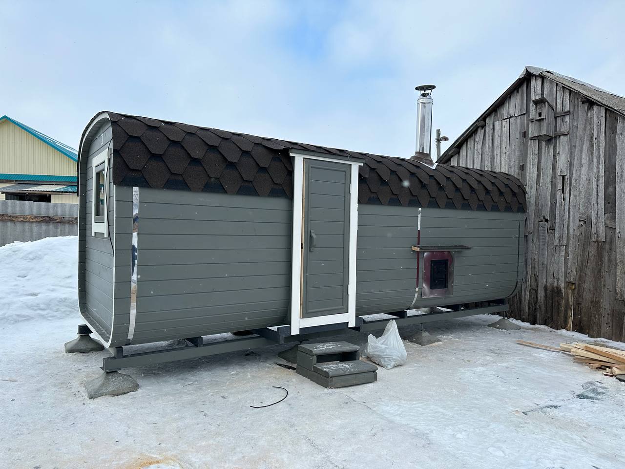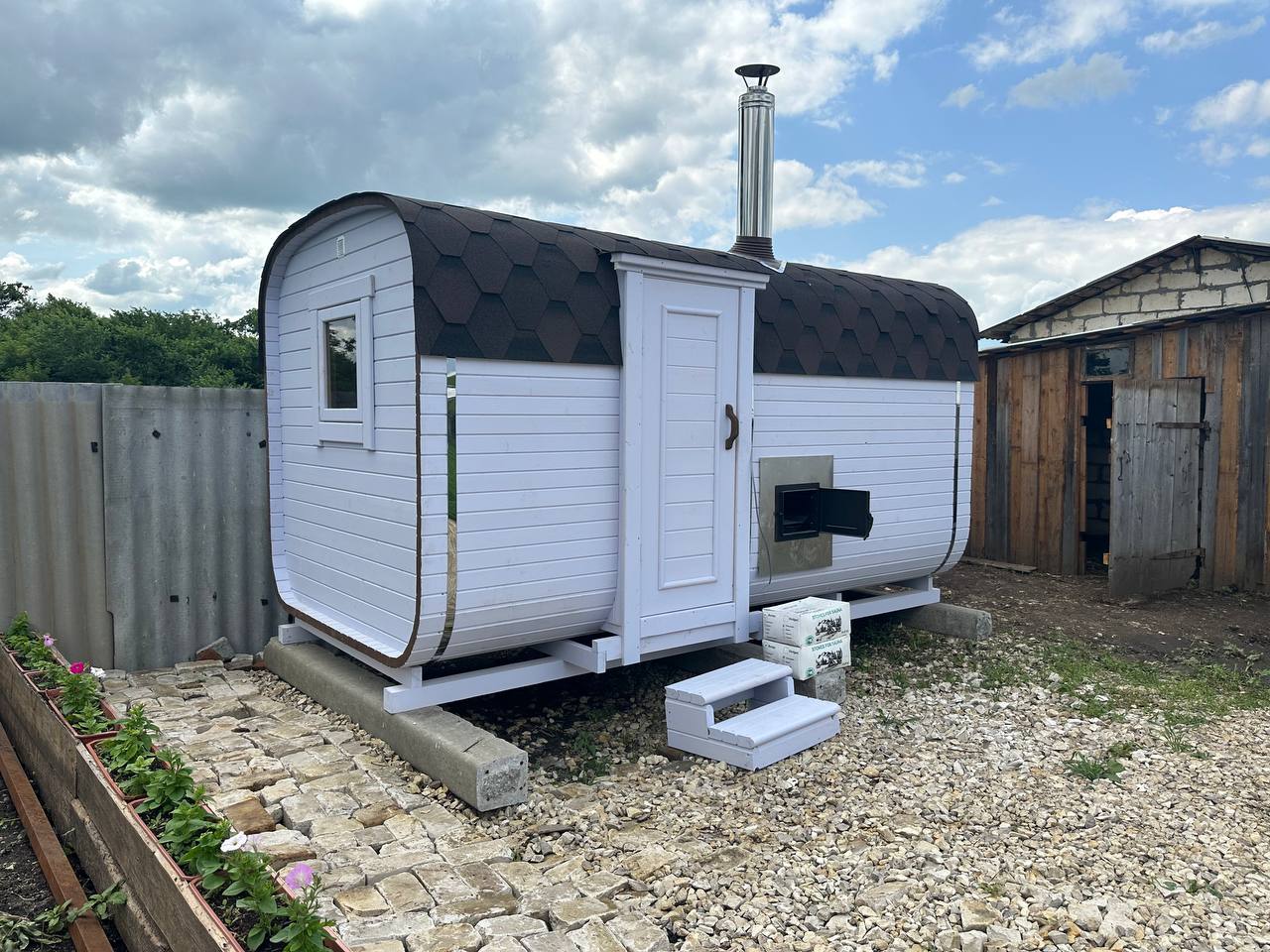 Баня-бочка 4*2.10 с козырьком